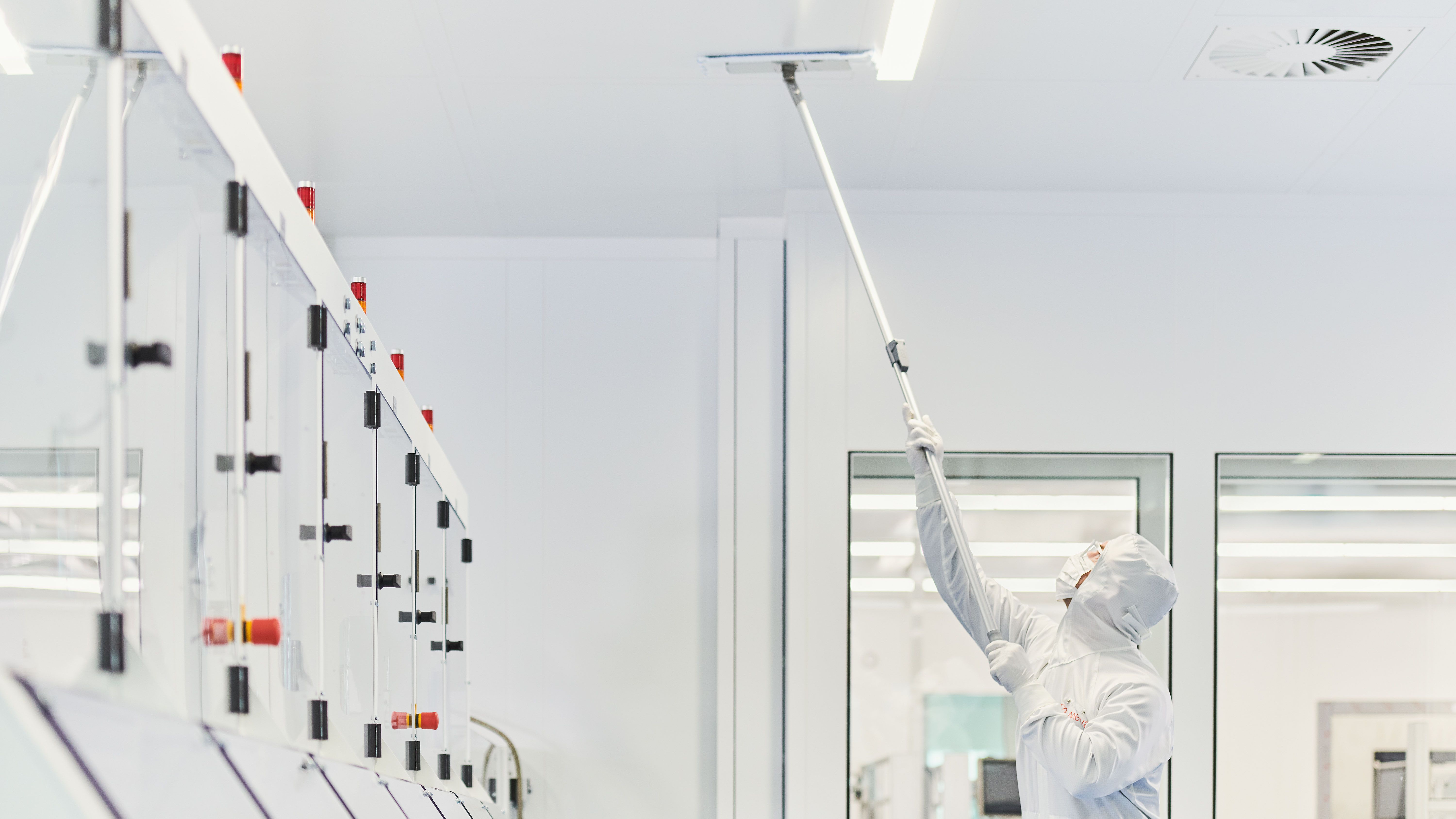 In Reinräumen werden hochpräzise Produkte hergestellt, bei denen selbst kleinste Verunreinigungen zu Fehlern führen können.